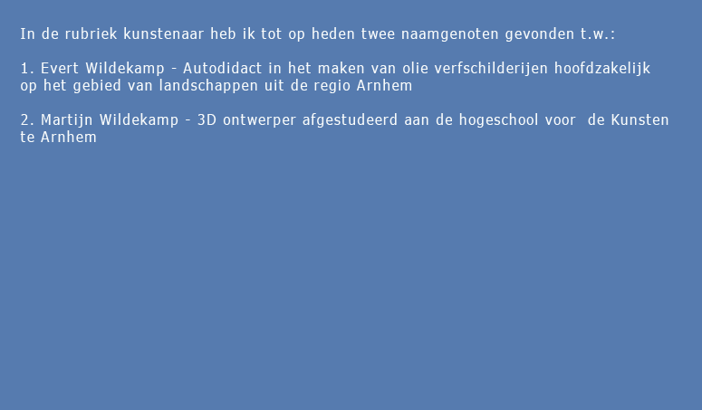 Startpagina Stamboom De Historie Oude foto''s Het laatste nieuws Bekende Wildekampie's Overige zaken Aanvullingen doorgeven Mail ons even